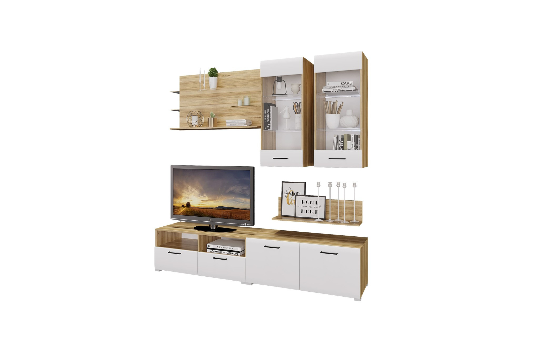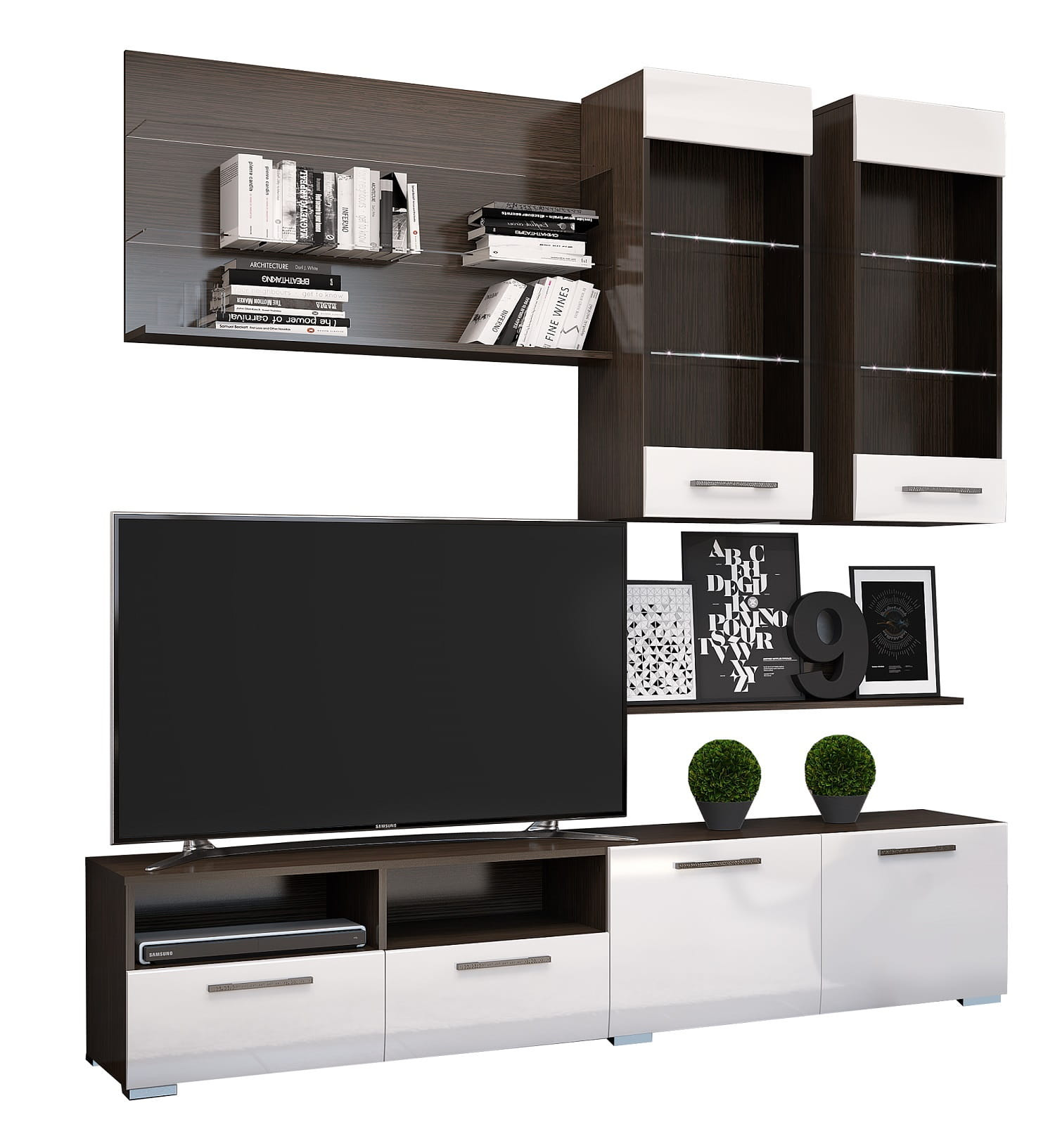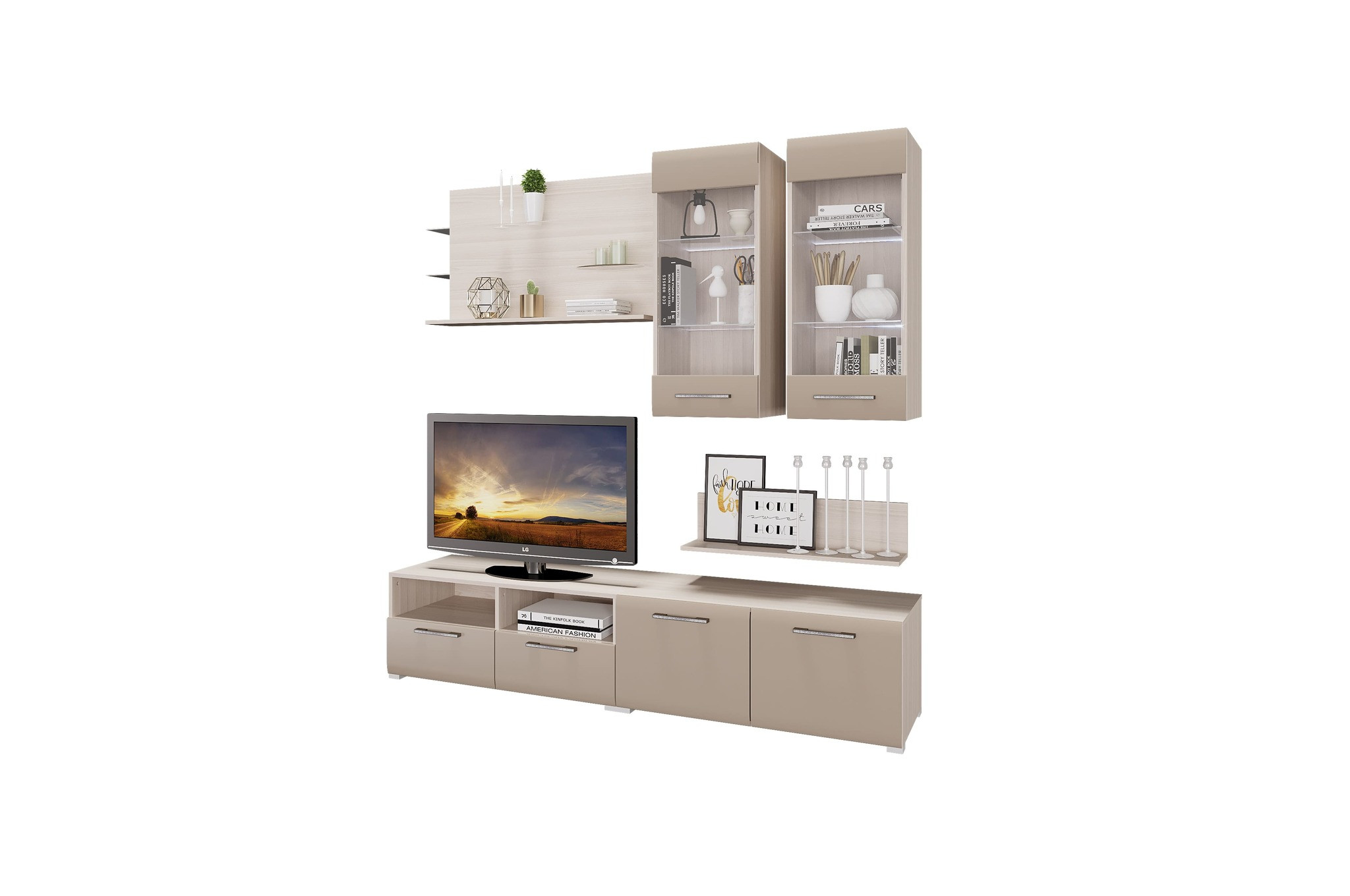 Гостиная Ницца поможет правильно организовать ваше жилое пространство, вдохнуть новую жизнь в интерьер. К данной гостиной вы можете приобрести спальный гарнитур Ницца. Ницца-3 -современная и стильная мебель, которая поможет правильно организовать любое пространство в вашей квартире.Включает в себя: две витрины с полками, тумбу под ТВ с открытыми полками под аппаратуру, двумя выдвижными ящиками и двумя закрытыми шкафчиками, а так же открытые полки для книг, сувениров и предметов декора. На глянцевых фасадах горизонтальная фрезеровка. Стенка произвоится только в одном исполнении.