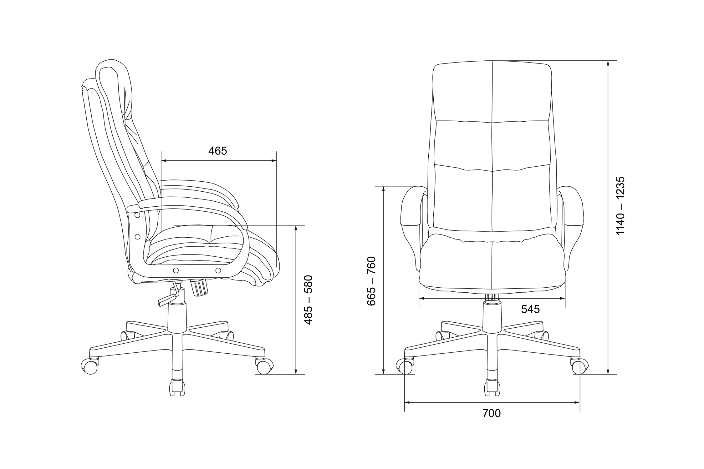 Диаметр колес - 5 см. Высота сиденья - 58 см. Высота с подлокотниками - 76 см. Ширина сиденья - 54.5 см. Глубина сиденья - 46.5 см. Материал колес - с накладкой PU. Механизм качания с возможностью фиксации в рабочем положении. Подлокотники пластиковые с мягкими накладками. Регулировка под вес. Крестовина пластиковая.